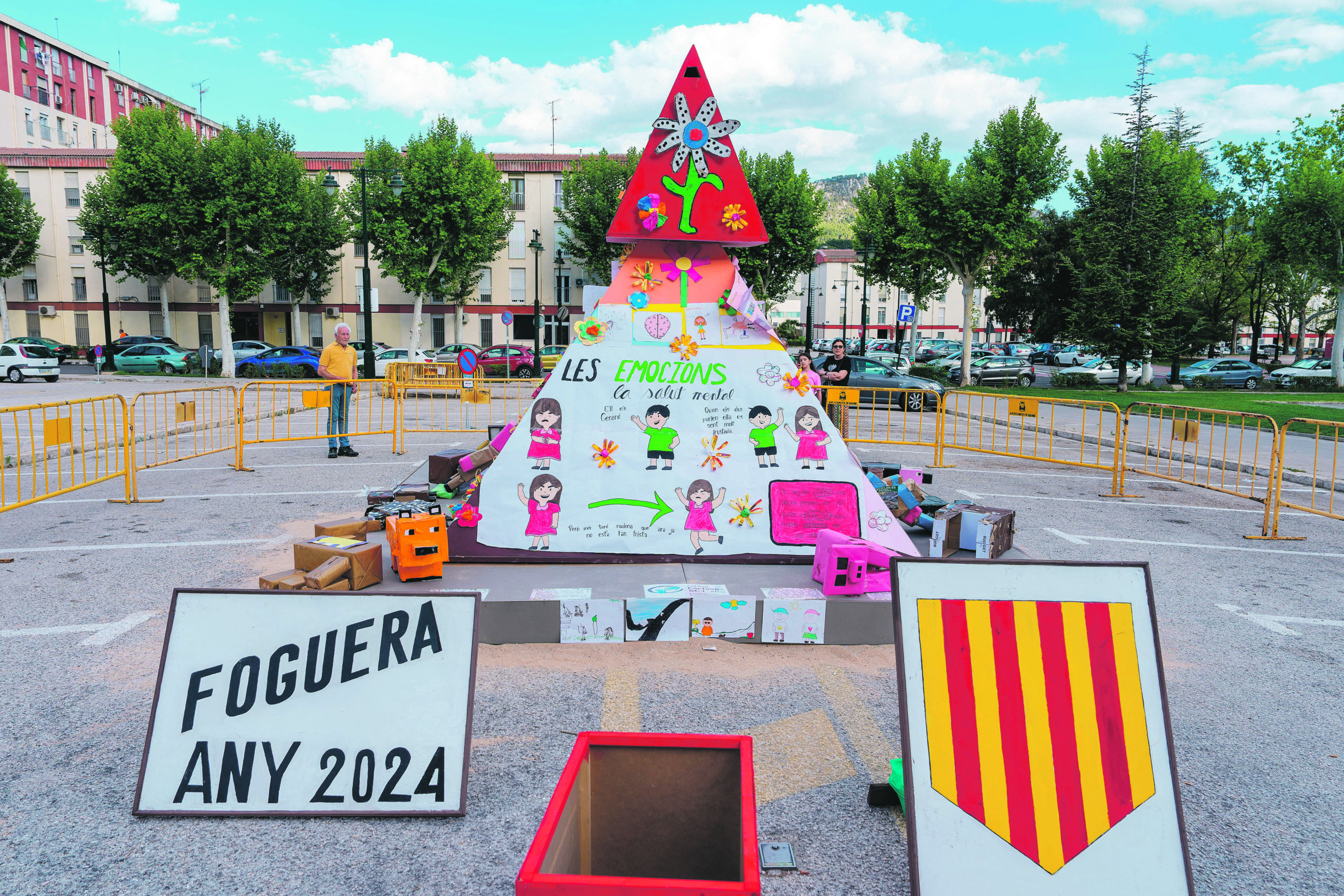 Quant a la foguera d’aquest 2024, indicar que, a diferència d’altres anys, no ha tingut res a veure amb alguna reivindicació relacionada amb el barri, si no que es tracta d’una piràmide amb diferents trams de colors, i que cada color representa un aspecte de la societat, reivindicant així aspectes com el medi ambient o la integració social. Per a la seua elaboració s’ha comptat amb la participació dels centres educatius del barri i també s’ha convidat a entitats a col·laborar.