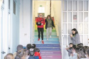 “M’havien convidat per a donar una xarrada i jo anava amb eixa intenció, però quan vaig veure a tothom per a donar-me la sorpresa vaig sentir molta alegria”, afirma l’alcoiana, que ara passa a donar nom al gimnàs del col·legi després de la seua recent reforma.